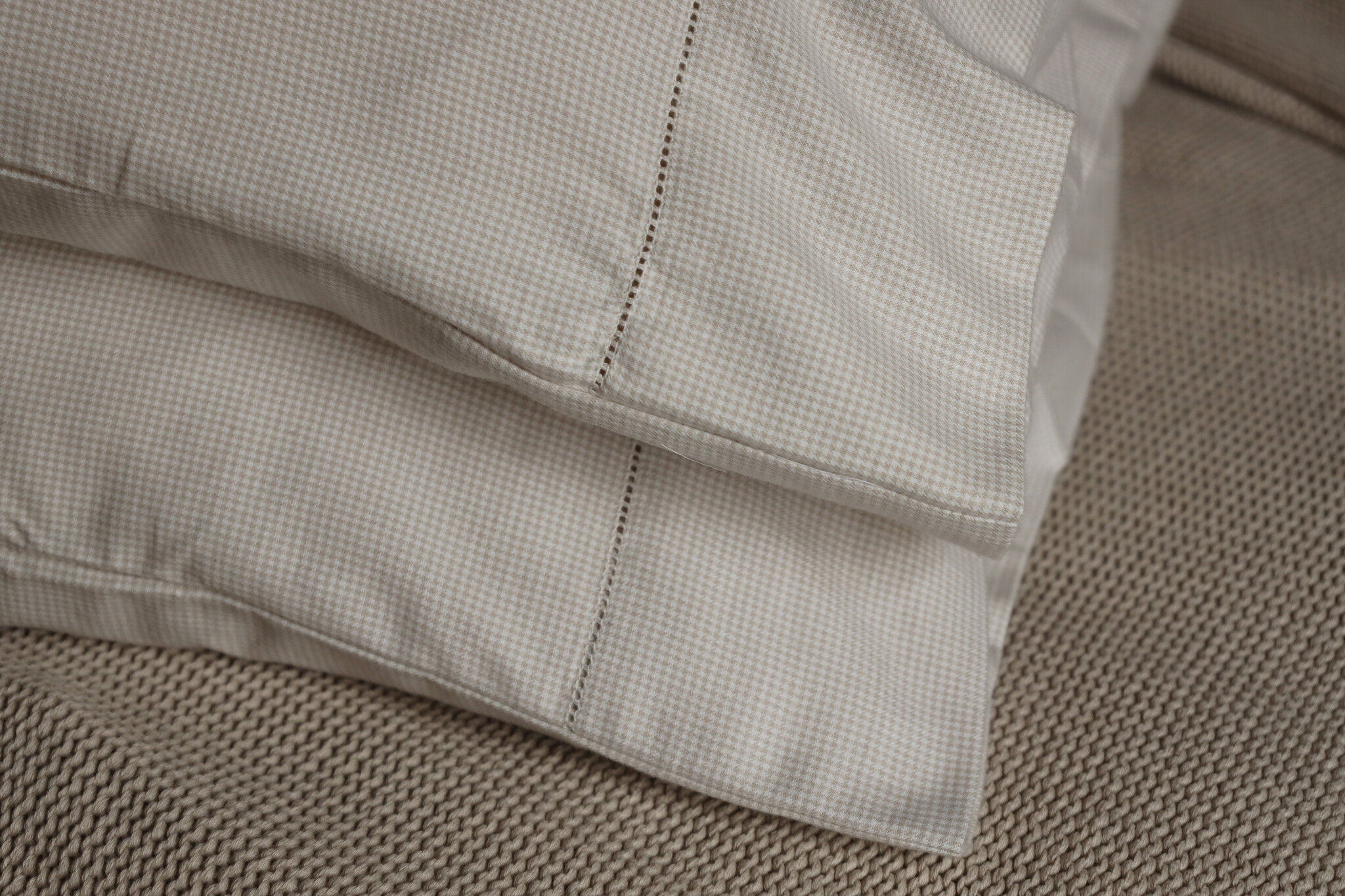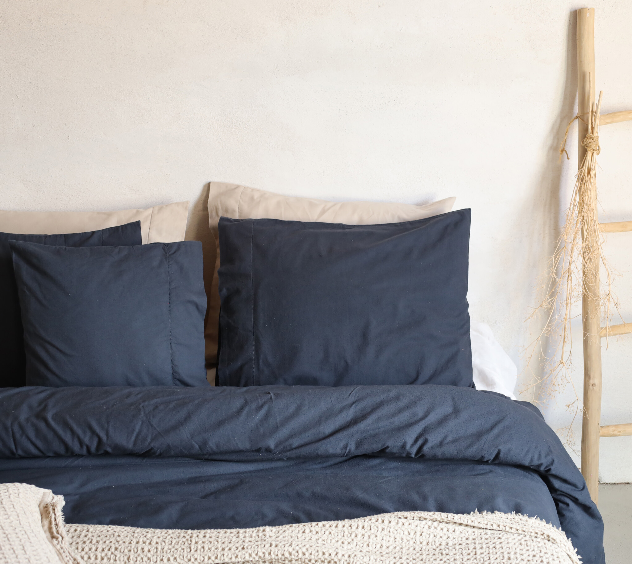 "Duvet cover Solden is so incredibly soft that getting up will be a daily challenge. It is made of 100% cotton flannel, which is warm, soft and comfortable. The matching pillowcases are finished with a robust stitch on one side, giving it a little extra flair. Duvet cover Solden is available in three contemporary colors: beige, grey-white, dark blue-white, white. Sweet dreams! " |