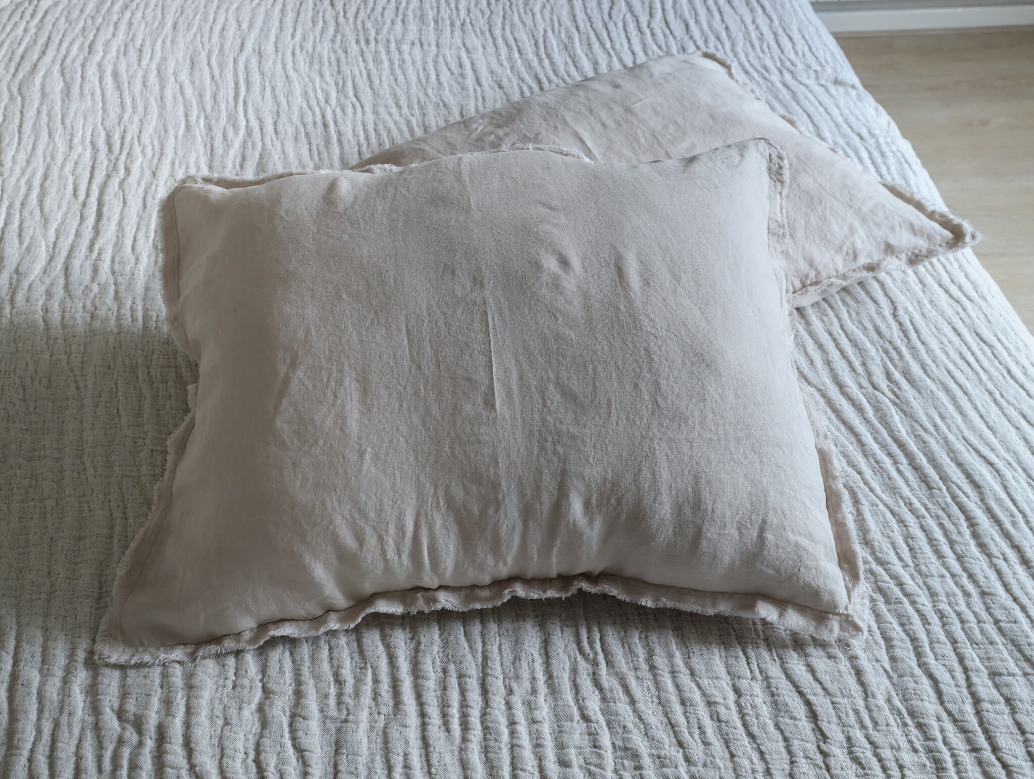 Un véritable coup de cœur de nos clients : ces taies d’oreiller en lin avec bord frangé, fini à la main, allient style et caractère.