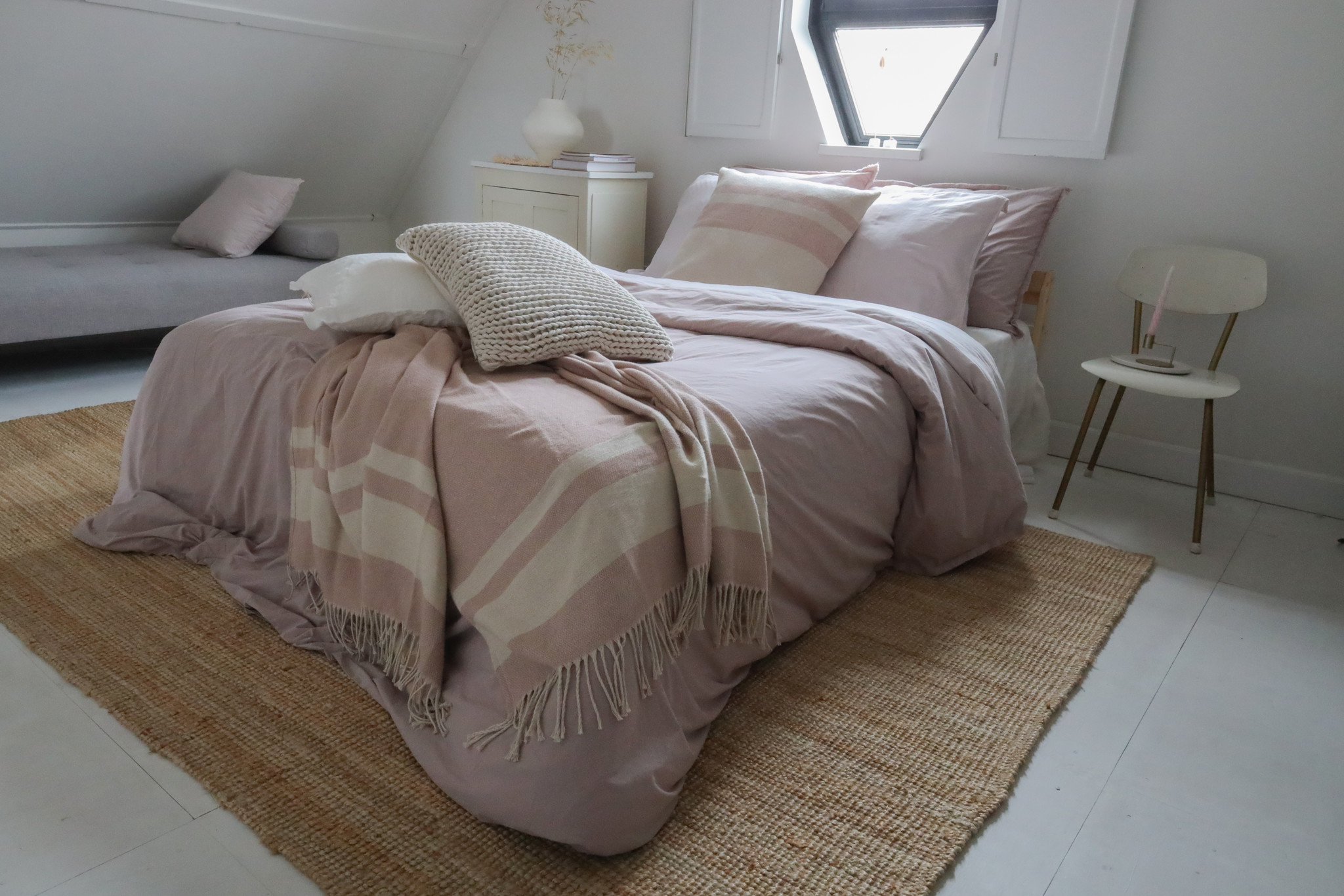 Lon plaid en sierkussenhoes zijn gemaakt van een mix van 50% linnen en 50% katoen, waardoor het heerlijk zacht aanvoelt.